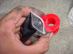 Step 7: The FM package came with a tiny bag of grease. Apply this to the inside of the bushing to reduce squeeks. The bushings have a cut on the side, and you'll simply pry it open with your fingers and place them over the bar. Use a lot of it, because if it squeeks from too little, you'll regret it and have to go back. |