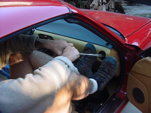 Make sure to stop during that procedure before removing the gage cluster, you only need to remove the top plastic pod, so that you can pry on the small tan dash piece to the left of the steering wheel.