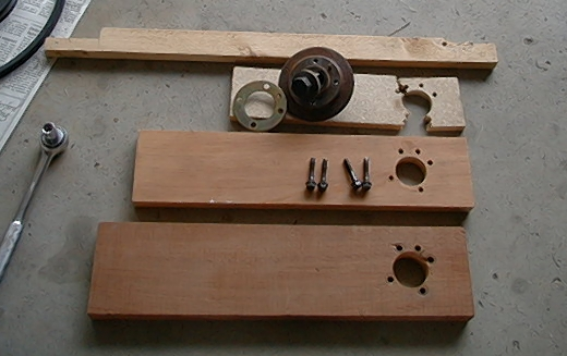 Here are some various hold tools of increasing success. The gold color pulley-strengthening ring is used to trace screw hole patterns. Notice the hole for the alignment pin.
