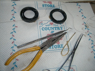 Getting the old seals out takes some care, here are some tools used in the removal: