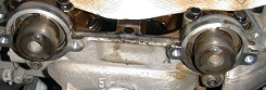 The remaining re-assembly is an easy reversal of the process. A new valve cover gasket is a good idea. Instructions in your manual should have you clean the old seating channel and prepare it with silicone. The head surface gets no silicone, except for six small spots where the rubber gasket makes a 90-degree vertical turn over the camshafts.