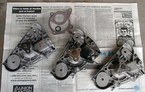 Note from Hiroki Miyano: In the picture, you see three water pumps. Mr. Profitt claims that two water pumps he ordered didn't fit due to smaller bolt holes. He talks about the mirror like finish in the correct water pumps. I suspect the one that fit for him was a brand new water pump as opposed to re-manufactured water pump.