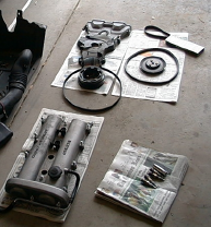 It's a really good idea to get a repair manual. Take a hint and get some 'special' tools together before you go further. That's right, there's a lot of stuff that was a heck of a lot easier to put on the car than it's going to be to get off. If you can't scrounge together the special tools or if you can't work with them, then forget the rest. Fortunately, there's nothing so exotic that a reasonably handy person can't handle it. You'll need get or make camshaft seal seating tool, a crankshaft holding tool and a camshaft seal extraction tool. I'd also get some of those plastic tie straps and a tube of silicone sealant.