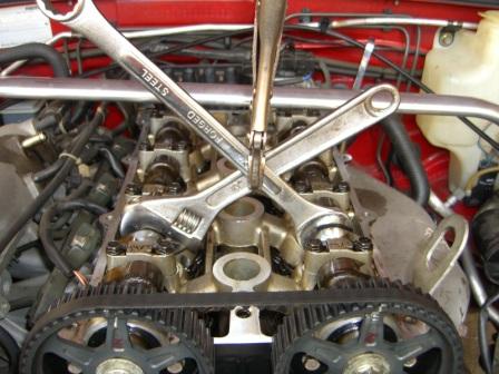 TIP: Kim Burgess suggests: Clamping the cams in positions aids the solitary mechanic in reinstalling the belt by 'locking' the cam wheels into position.