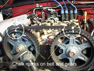 I followed the tensioning procedure and thought I checked the timing but obviously I didn't check it closely enough which brings us on to my first point. Once you have reinstalled the belt, checked the timing, tensioned it and rechecked the timing, take a break and get a coke or something. When you come back refreshed you can recheck everything again. It might seem obvious or unnecessary but it's certainly quicker than doing the job twice! I was adamant that everything was right the first time even though the car ran like crap. I didn't drive it all weekend and was resigned to taking it to the dealer, but my wife suggested I have one more look - it only I'd taken more time checking...