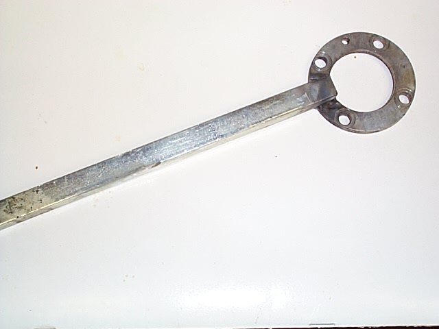 It is basically a large washer (I think it was a 1 1/2" washer) that fits over the crank bolt and then there are holes drilled in it for the 10mm bolts. I then welded a piece of 1/2" keystock as a handle. The handle can be blocked any number of ways.