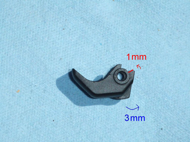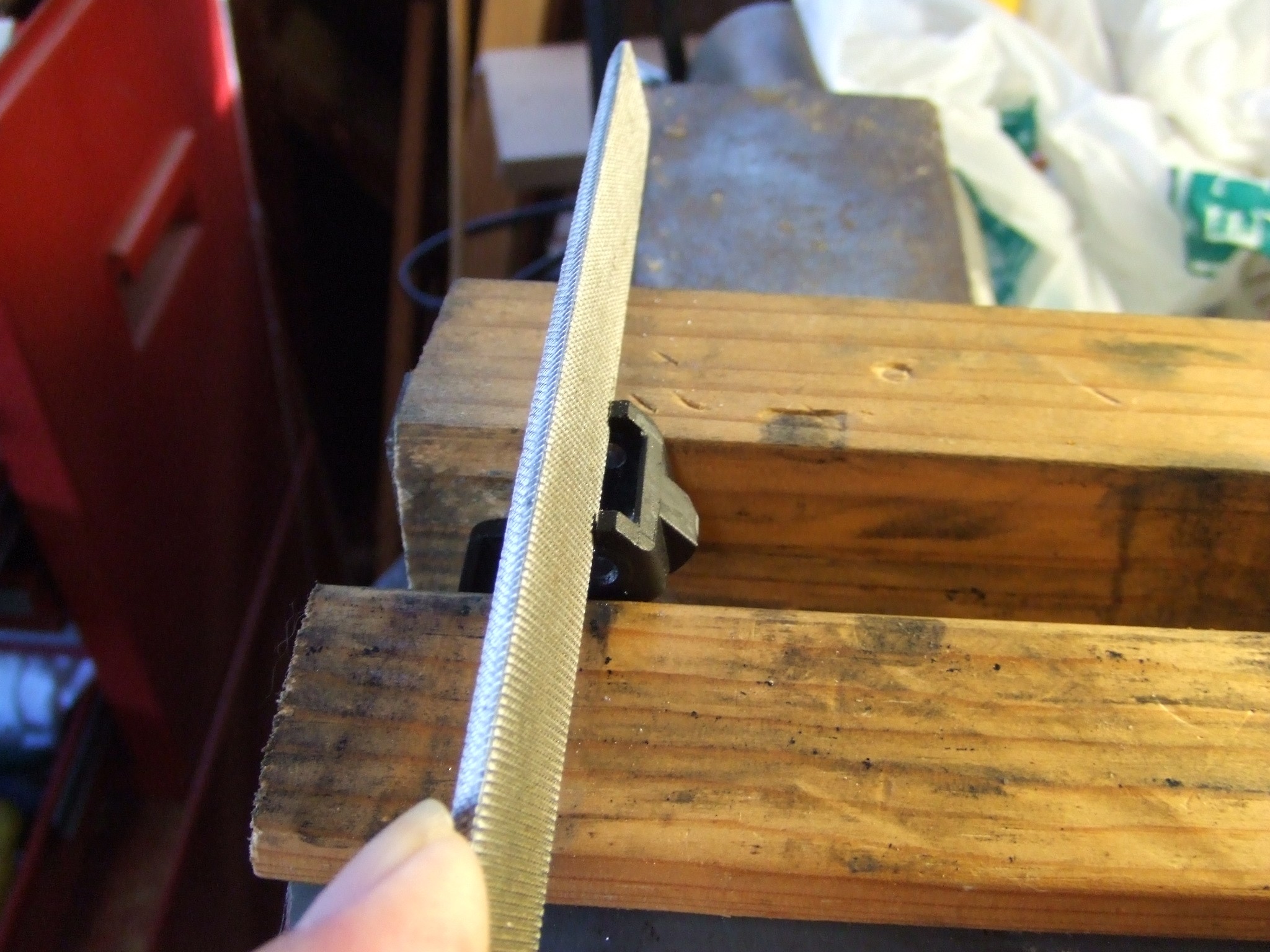 File for a few good stokes, the reassemble the lock and pin without the spring to test. Once there is a solid engagement between the lock and the lever, you’re done.