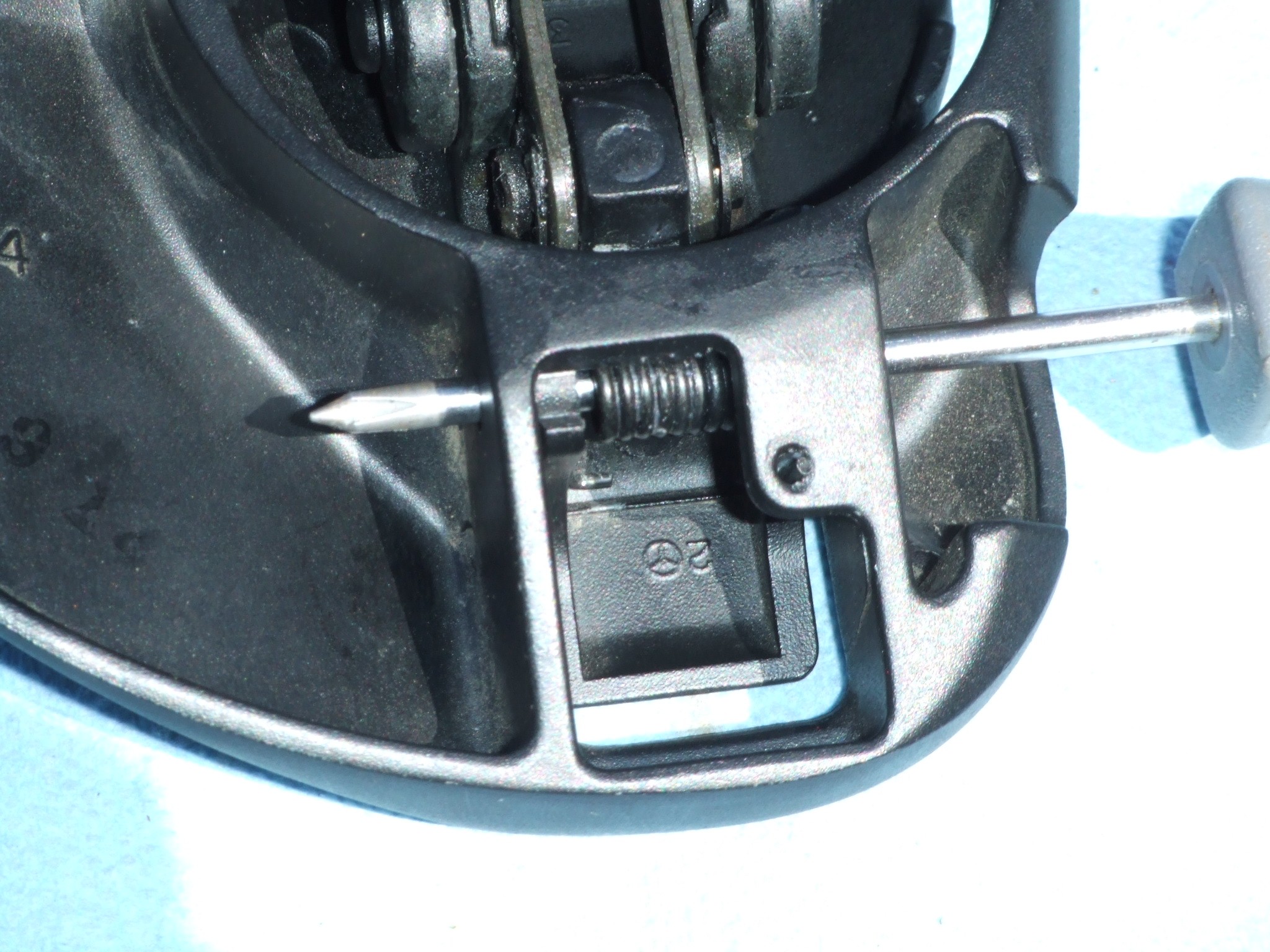 A common problem in Miatas is that the latch lever can be lowered without first pushing the locking button. New latch assemblies are expensive. Fortunately, the problem is easy to fix with no new parts needed.