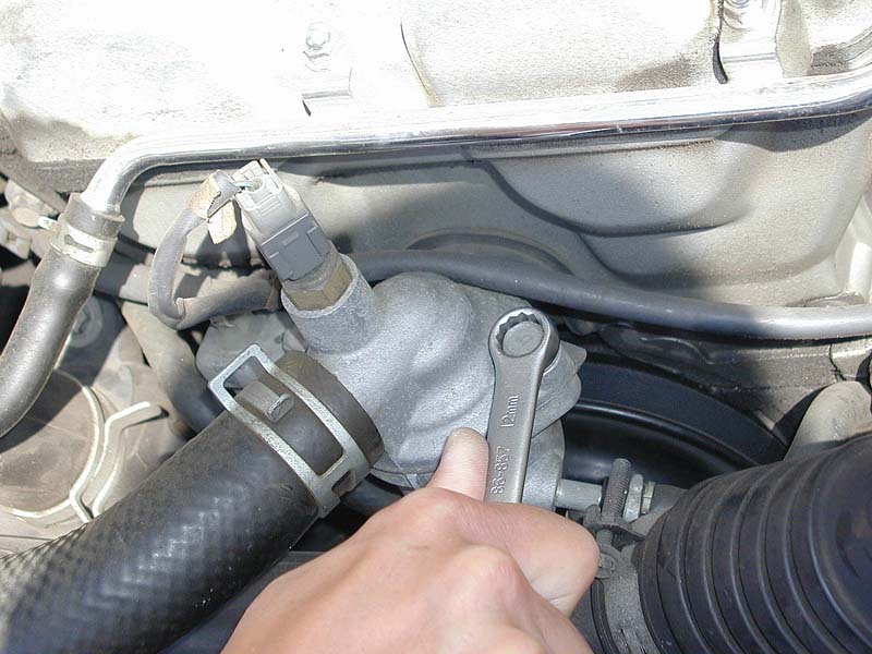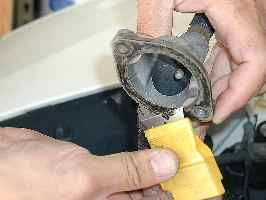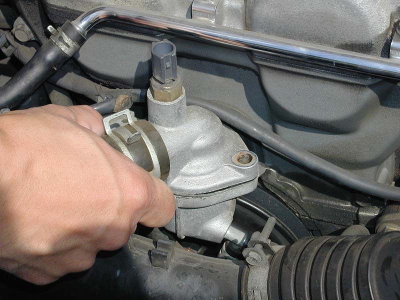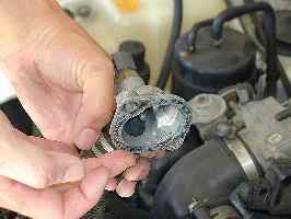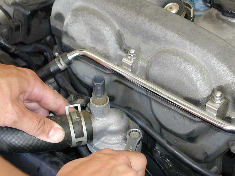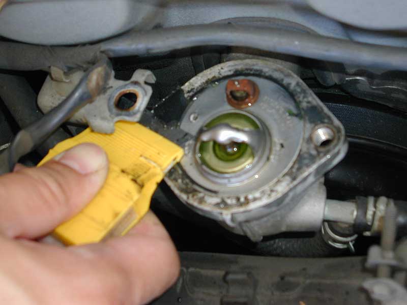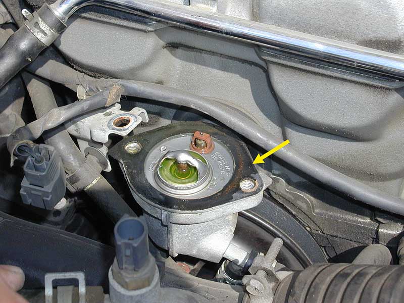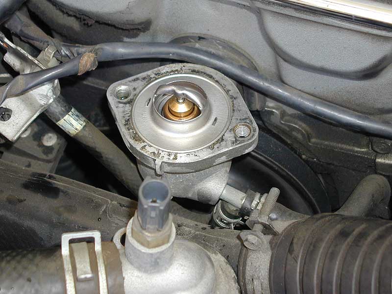 a new 160-degree Thermostat (1990 Miata in pictures shown - by Geoff Kim)