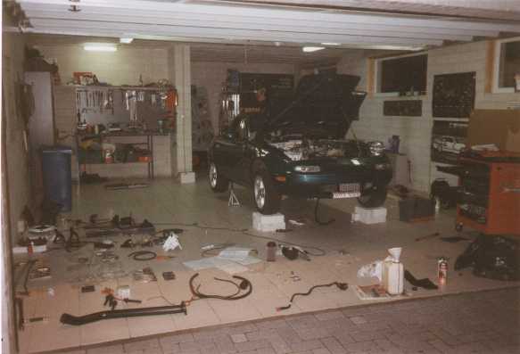 I was thinking about getting some more horsepower for a while now. I surfed the net for months reading everything I could find on *chargers but just couldn't decide which way to go. But then we got to drive the Corvette C5 ... When we got back in our Miata, my wife immediately said: "this thing is way too slow, get me some real horsepower, like that Vette" Well, she didn't have to say that again! After talking to Corky Bell from Bell Engineering, he advised me to get the System IV Stage 2 ... nice big intercooled Garrett T25/28 turbo, good for at least 200hp ... perfect! The Streetdyno shows 205 rear wheel HP at 12.5psi, that's about 230HP at the crank. Haven't had it on a real dyno yet, so this figure is probably not correct, but it won't be far off.
