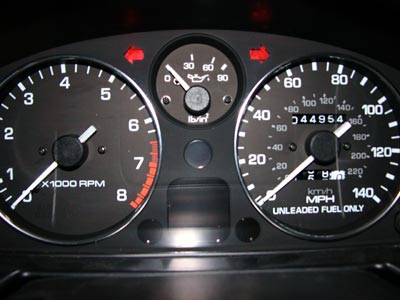 How to do the replacement? Well, in a '92 - the actual process might vary from vehicle to vehicle - start by yanking out the instrument cluster: remove the plastic 'box' from behind the steering wheel (4 screws), then the hood (2 screws/multiple snaps), then separate the cluster from two wire harness (three if you've got a hardtop defroster) and the speedometer cable. Once out, separate the clear plastic that goes over your gauges by using a flathead screw driver to release the eight snaps holding it in place, being careful not to break any. The piece with the clear plastic is where the green turn signals reside.