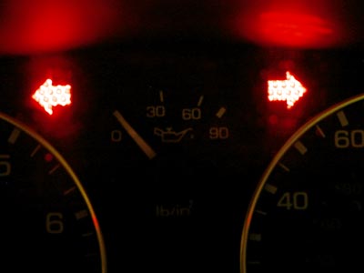 One thing you'll notice right off is that the original turn signals have the arrow shape embossed on them, i.e. it is raised so that it fits into the arrow cutout on the cluster panel. I thought about using the Dremel to do the same to the replacements, but wanted to see what it looked like first and surprisingly, the lack of an embossed arrow doesn't seem to negatively affect the look or operation of the signals. So, it's up to you!