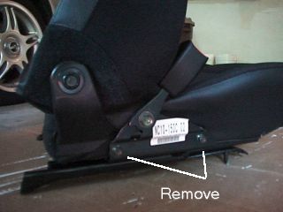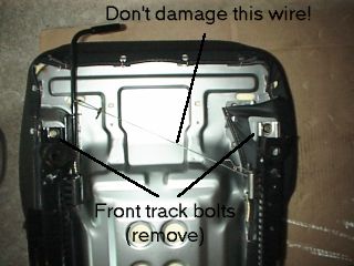 tracks to the seat pan. Use a 12mm socket to remove the bolts. Now slide the tracks