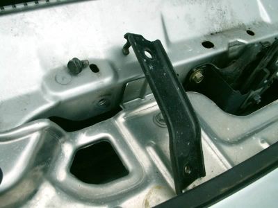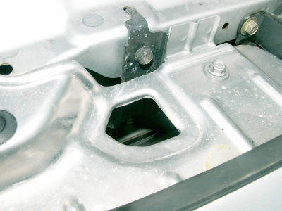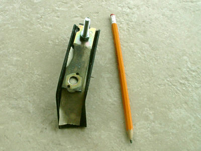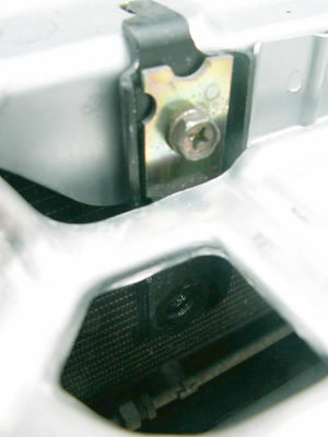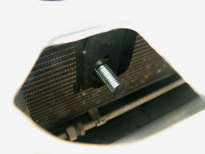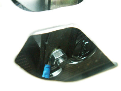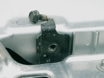 This is a closer view of the bracket top. The hole just in front of the bracket frames a lot of the later shots. It also provides access for a socket wrench later on.