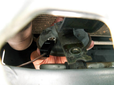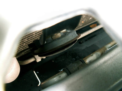 Here's a clear shot of the stock horn through the hole. It's impossible to remove the horn from above.