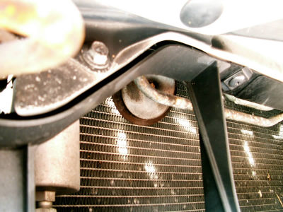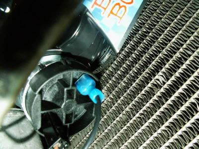The mounting bolt that comes with the Bad Boy is too long to use with a socket in the tight confines of the space in front of the radiator. A hacksaw can be used to improve the fit.