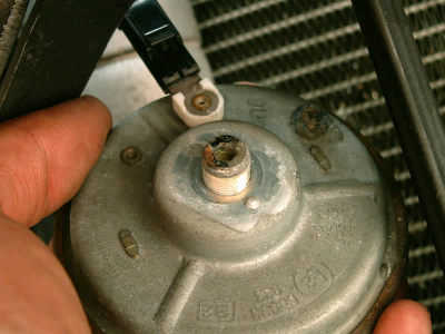 After disconnecting the positive lead. the horn is easily removed.