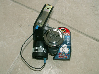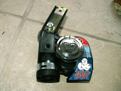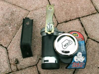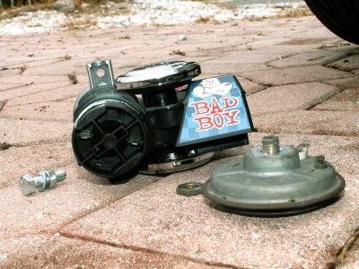 The stock Miata horn is very inadequate. I was sick of being nearly run down by SUV drivers. I found an open-box Bad Boy (WOLO) air horn at Harbor Freight.
