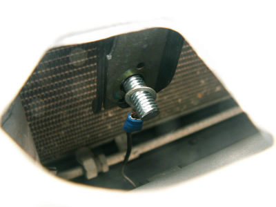 From below you can see how the bracket is attached. The stud sticking through the bracket is also the negative terminal for the horn.